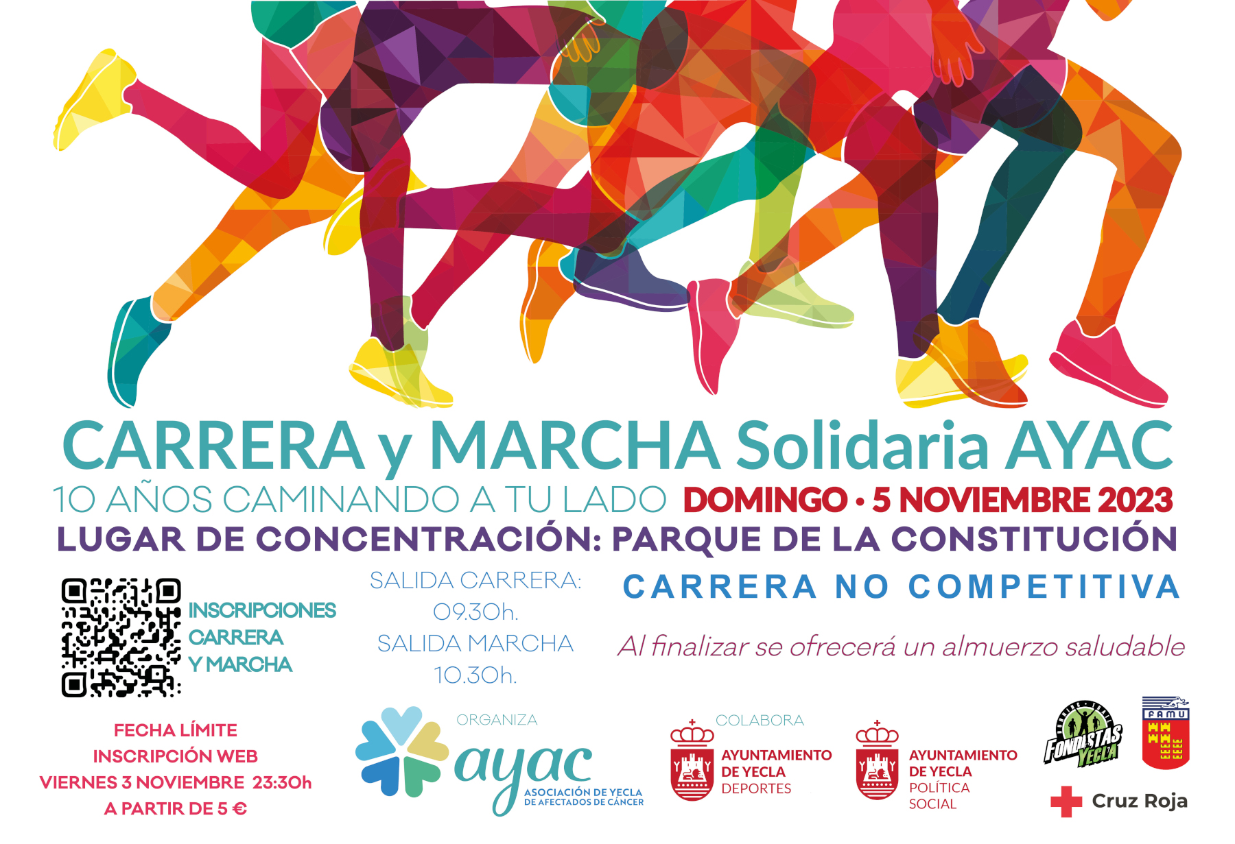 ¡No hagáis planes para el próximo domingo 5 de noviembre! Os esperamos en la 11ª edición de nuestra Marcha Solidaria, enmarcada bajo el lema “10 años caminando a tu lado”, que, al igual que el pasado año, contará con una Carrera Solidaria no competitiva gracias a la colaboración con el Club Fondistas Yecla