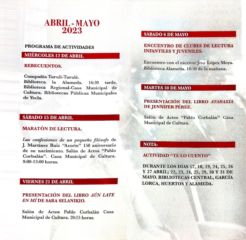 Casa Municipal de Cultura Yecla, Bibliotecas Públicas Municipales y Concejalía de Cultura