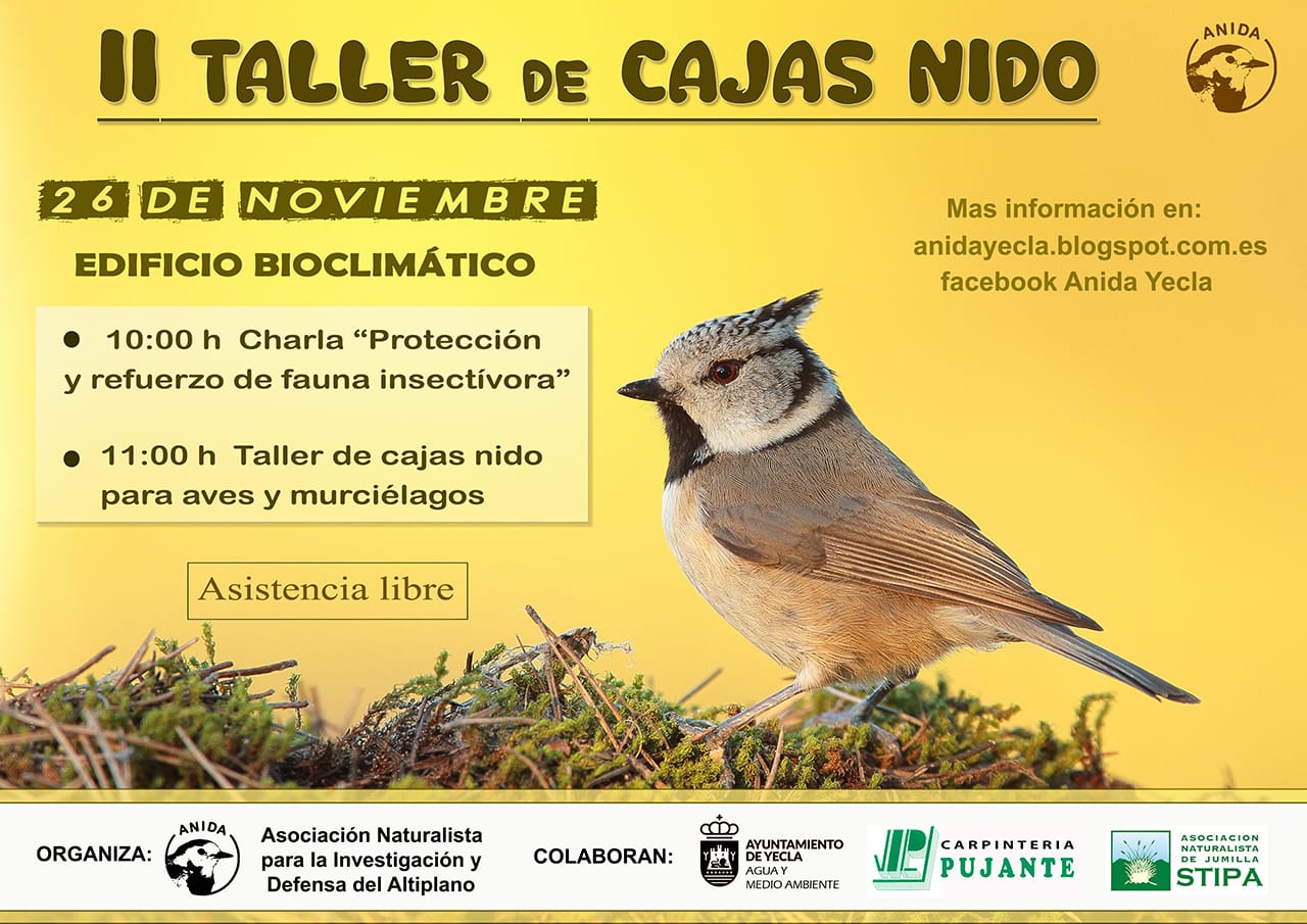II Taller de Cajas Nido + Añadir Google Calendar + exportación iCal / Outlook Fecha 26 Nov 2022 ¡Caducado! Hora 10:00 Localización Edificio Bioclimático Calle Abad José Sola, s/n Categoría Actos Edificio Bioclimático Organizador ANIDA