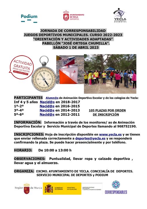 Jornada de Corresponsabilidad Juegos Deportivos Municipales 2022-2023 «Orientación y actividades adaptadas»