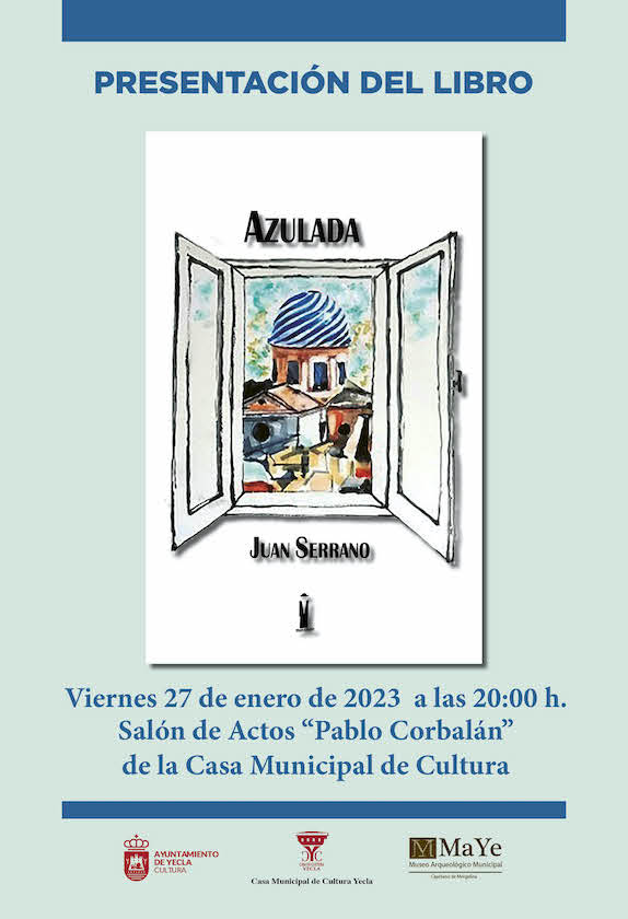 Presentación del libro «Azulada» de Juan Serrano + Añadir Google Calendar + exportación iCal / Outlook Fecha 27 Ene 2023 ¡Caducado! Hora 20:00 Localización Salón de Actos Pablo Corbalán C/ España, 37 - 30510 Yecla (Murcia) Categoría Actos salón Pablo Corbalán Organizador Concejalía de Cultura, Casa Muncipal de Cultura y Museo Arqueológico "Cayetano de Mergelina"