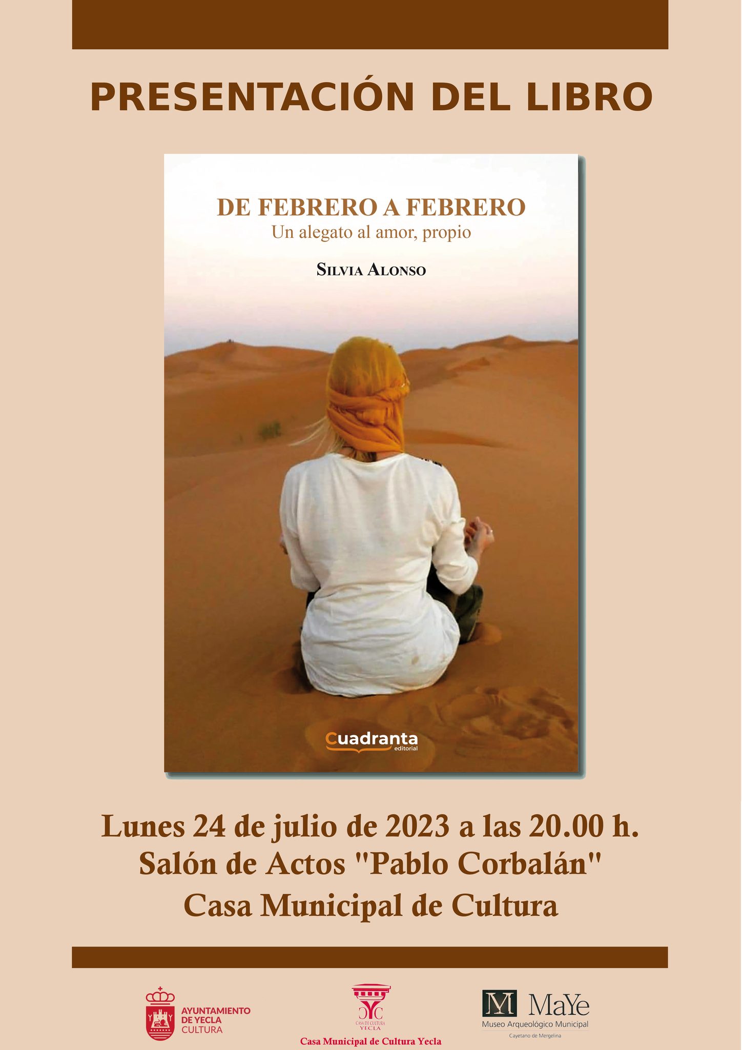 Presentación del libro «De febrero a febrero» de Silvia Alonso. Salón de Actos «Pablo Corbalán» de la casa Municipal de Cultura. 20:00 horas. Entrada libre hasta completar aforo.