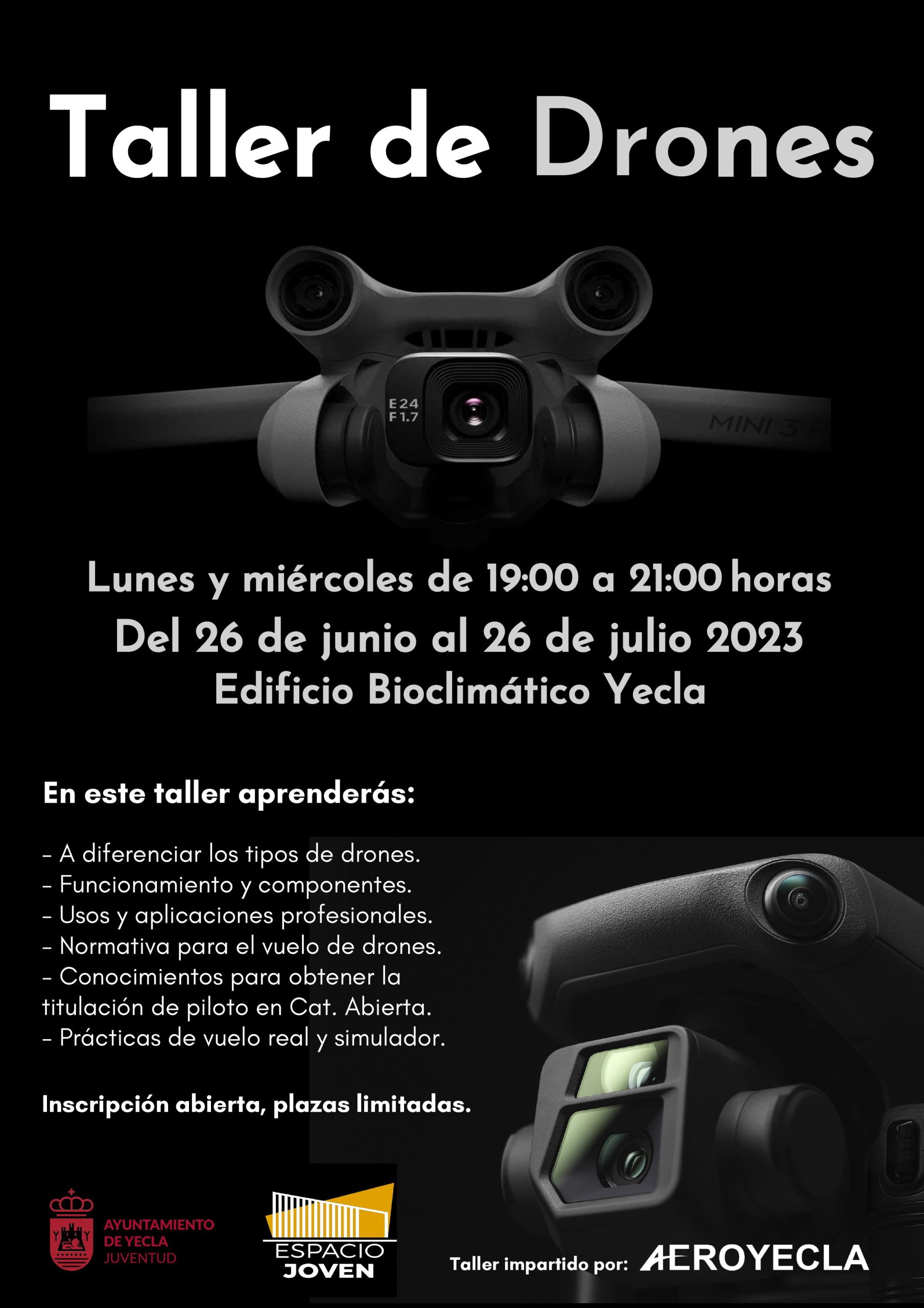 El Concejal de Juventud, Jorge Ortuño, ha informado del Taller de Drones que se ha puesto en marcha desde su concejalía, con la colaboración del Espacio Joven Yecla e impartido por profesionales con titulación en Master en aeronaves no tripuladas de forma remota.