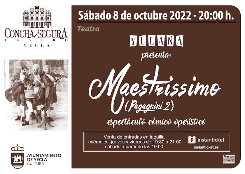 En la misma línea que Pagagnini, pero con una entidad propia, Maestrissimo deleitará a los espectadores con una cuidadísima estética y unos personajes divertidísimos, abordando temas como la ética, la creación, la originalidad y el valor del arte en la sociedad, al mismo tiempo que repasa momentos cumbre de la música clásica.