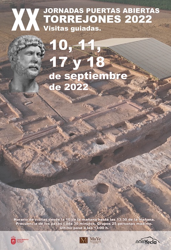 Arqueología 2022. De nuevo celebraremos las jornadas de puertas abiertas. Serán veinte ediciones con esta. Los días 10, 11, 17 y 18 de septiembre en Los Torrejones. Visitas guiadas a partir de las 10 de la mañana para grupos de 25 personas, con una frecuencia de 30 minutos por grupo. Último pase a las 13 horas. Conoce los últimos resultados de la última campaña de excavaciones arqueológicas.