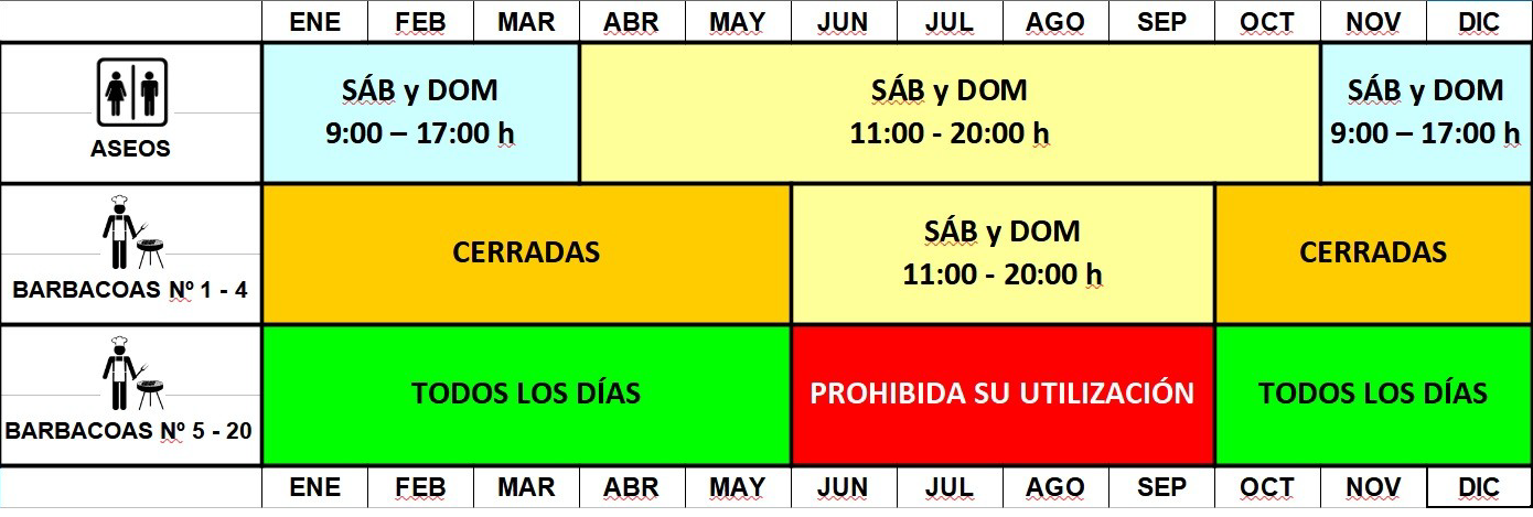 Los aseos y barbacoas están abiertas y a disposición en las siguientes fechas: