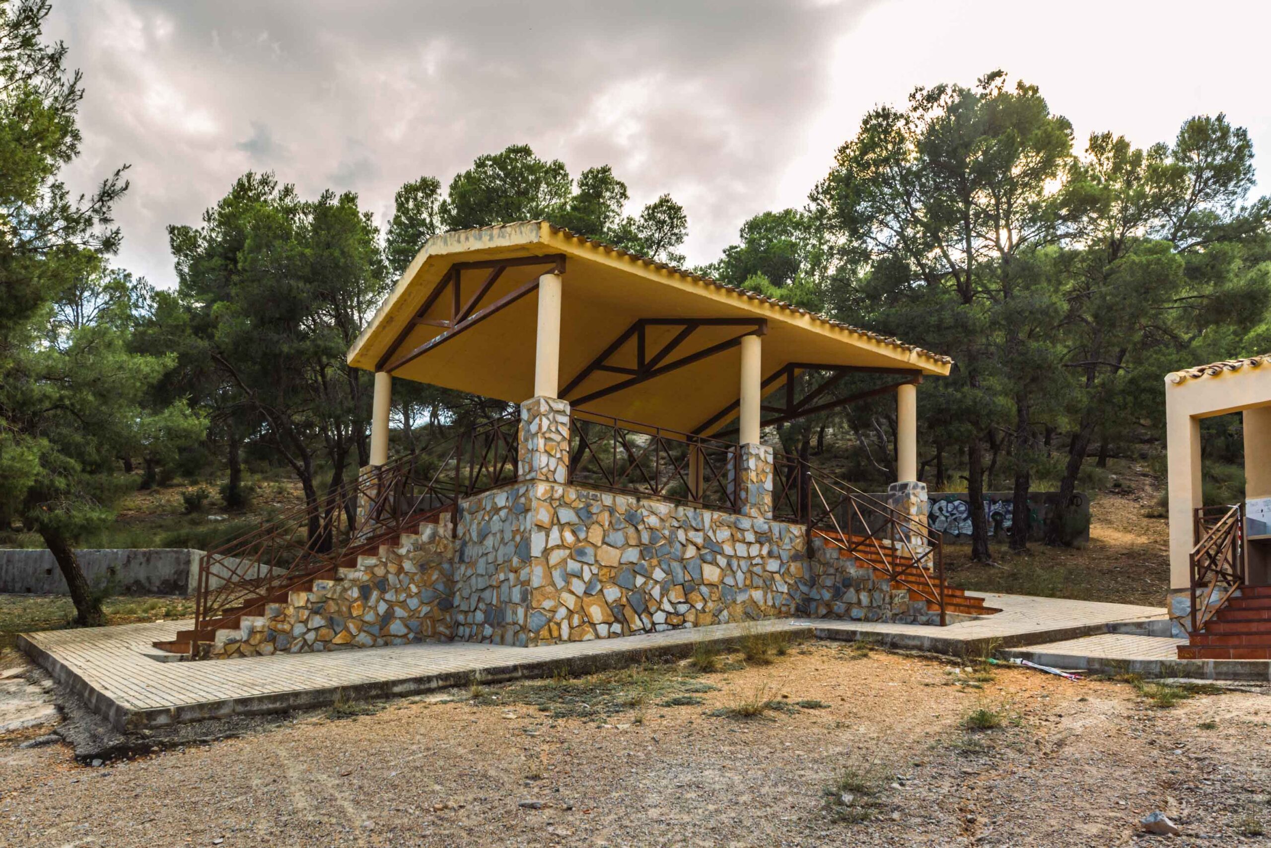 El paraje es un entorno de ligera pendiente situado en la parte baja del cerro, rodeado de pinos de distintos tamaños y vegetación arbustiva.