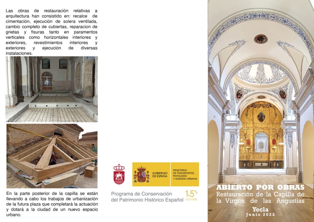 La iniciativa del Ayuntamiento de Yecla -‘Abierto por Obras’- que va a permitir nuevamente a los vecinos de la ciudad de Yecla conocer los trabajos de rehabilitación ‘in situ’, fue una de las mejoras incluidas por parte del Equipo de Gobierno en la última concurrencia a al Programa de Conservación del Patrimonio Histórico Español ‘1,5% Cultural’. Una propuesta valorada y puntuada positivamente por parte los técnicos del Ministerio que permitió al Ayuntamiento de Yecla contar con la financiación necesaria para ejecutar de manera definitiva el proyecto que recupera uno de los elementos más representativos del Patrimonio Cultural de la ciudad de Yecla. Cabe recordar que el importe de adjudicación ascensió a 884.500 euros, de los cuales el 70% lo aporta el Ministerio de Transportes, Movilidad y Agenda Urbana y el 30% restante el Ayuntamiento de Yecla.