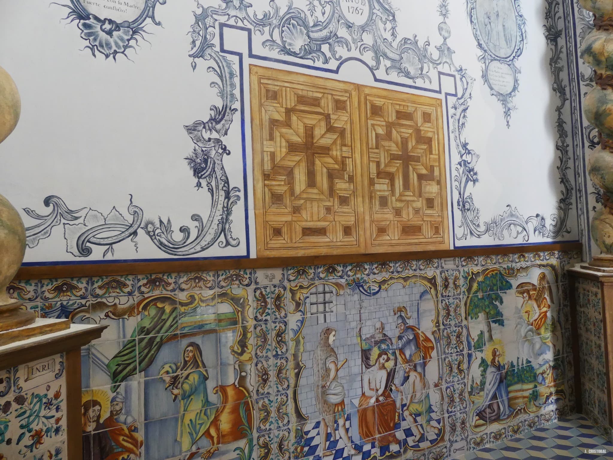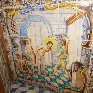 • 1770: Se adquiere la azulejería de Alcora (Valencia) para el camarín de la Virgen. Zócalo con motivos de la Pasión de Cristo y geométrico-vegetales para las peanas-bases de las columnas salomónicas.