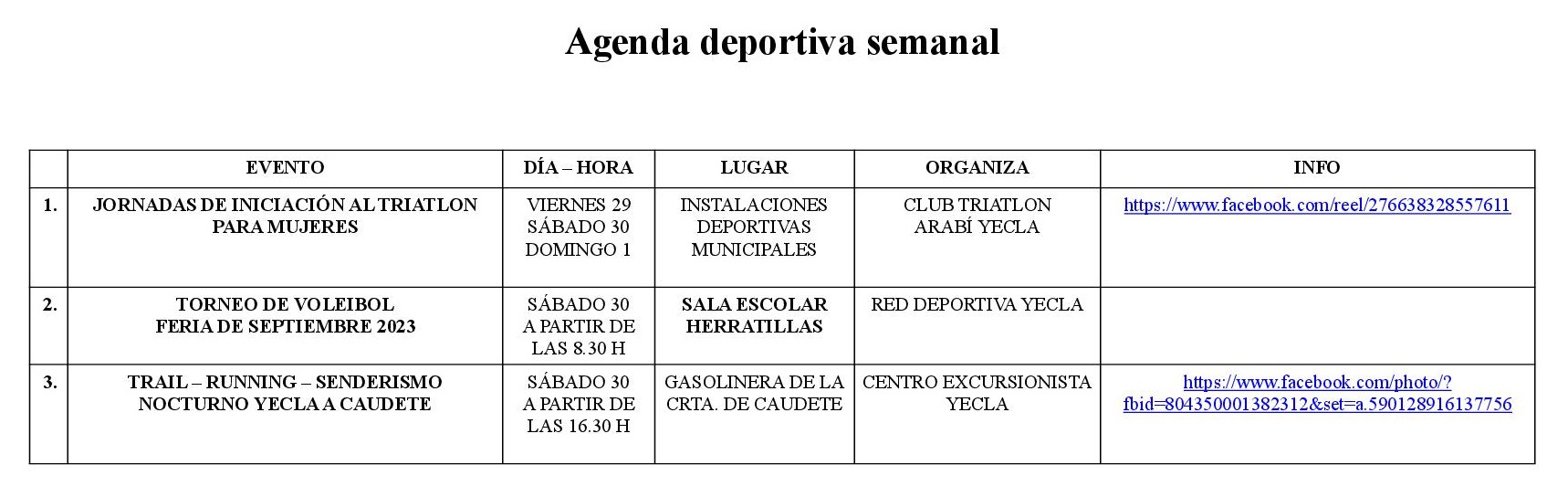 Inicio » Deporte, educación y juventud » Agenda deportiva