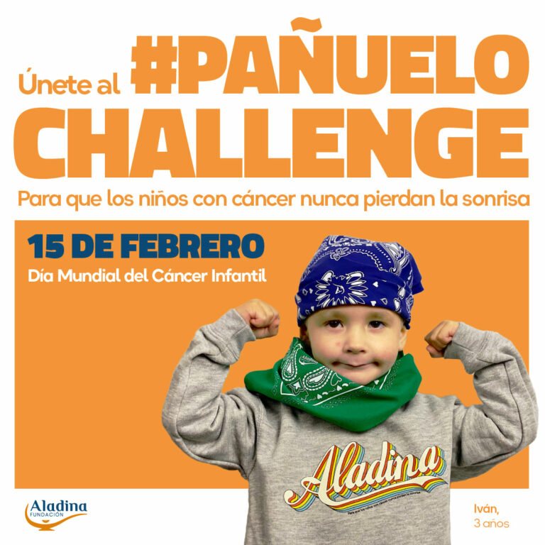 El #PañueloChallengeAladina ha convocado a colegios, hospitales, ayuntamientos de toda España y a toda la sociedad en general, a ponerse en la cabeza un pañuelo y compartir esa imagen en redes sociales para generar una gran ola de solidaridad con los niños y adolescentes con cáncer.