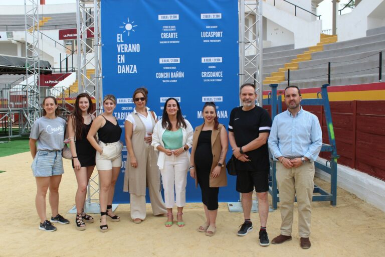 La alcaldesa de Yecla, Remedios Lajara y el concejal de festejos, José Antonio Marín, junto a las academias de baile de nuestra ciudad han presentado esta mañana, en la plaza de toros, el cartel de la segunda edición de ‘El Verano en Danza’. Una iniciativa variada, alternativa y al aire libre que se consolida como la gran apuesta musical del verano. Un festival que recoge baile, humor y música; y que a su vez cuenta con la participación de jóvenes yeclanos que forman parte de las distintas academias de baile de Yecla, humoristas y artistas de primer nivel dentro del panorama nacional.