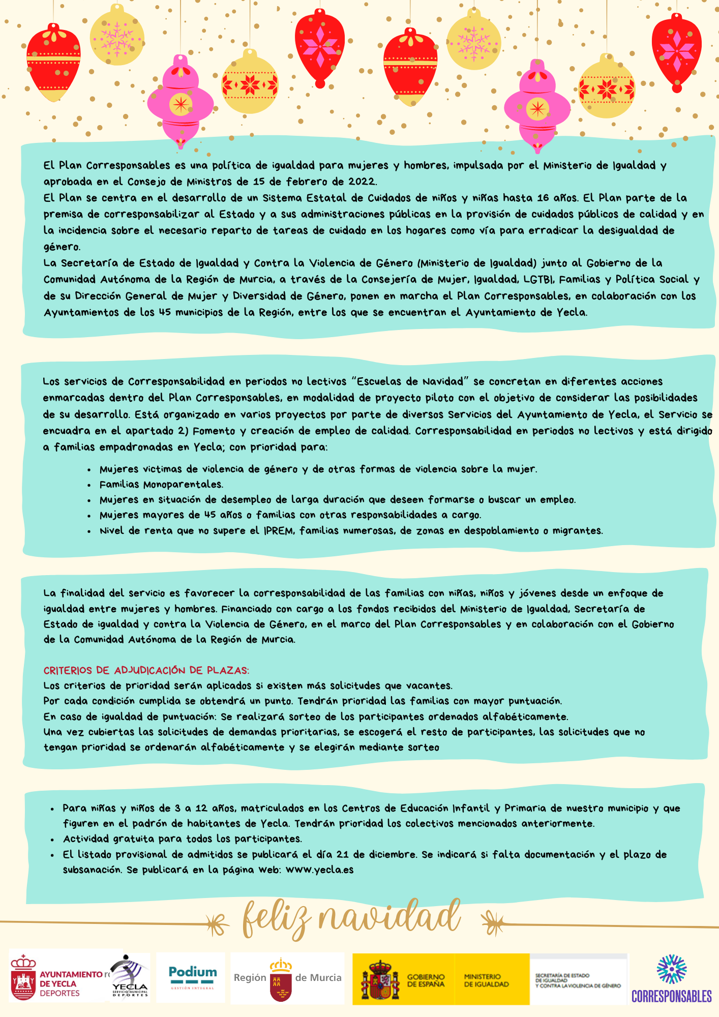 DESTINATARIOS: Niñas y niños de 3 a 12 años, matriculados en los centros de eduación infantil y primaria de nuestro municipio y que figuren inscritos en el Padrón de Habitantes de Yecla.