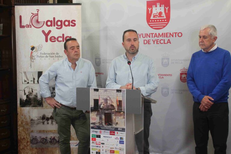 El Concejal de Festejos, José Antonio Marín, ha presentado, acompañado del presidente de la Asociación Cultural de Bicicletas Clásicas “Las Galgas”, Martín Marco, y del presidente de AMPY, Pedro Ángel Sandoval, la recuperada VII Concentración de Bicicletas Clásicas, que tendrá lugar el próximo fin de semana como parte del programa de actos de las Fiestas de San Isidro de Yecla 2023.