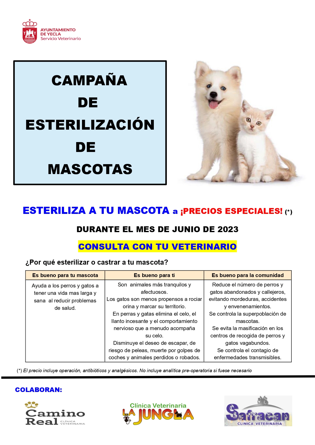 Esteriliza a tu mascota a precios especiales durante el mes de junio. Consulta con tu veterinario.