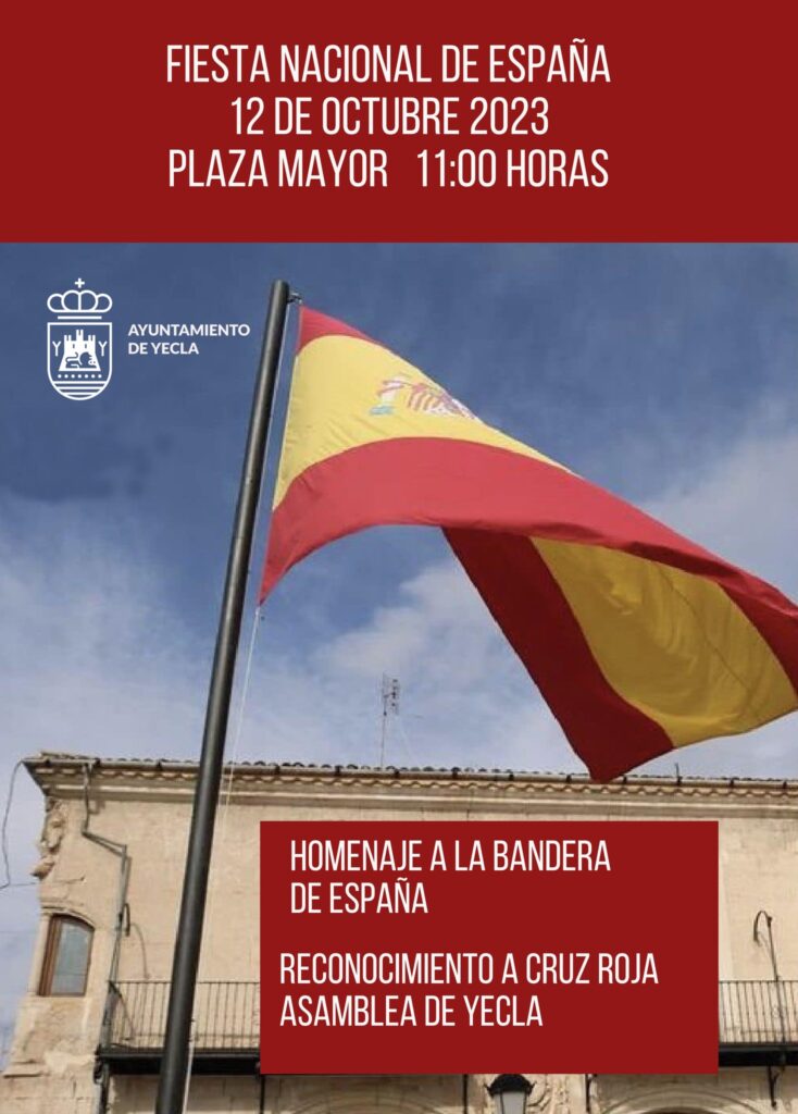 Jueves 12 de octubre, a las 11:00 horas en la Plaza Mayor: Homenaje a la Bandera y reconocimiento institucional a Cruz Roja – Asamblea de Yecla.