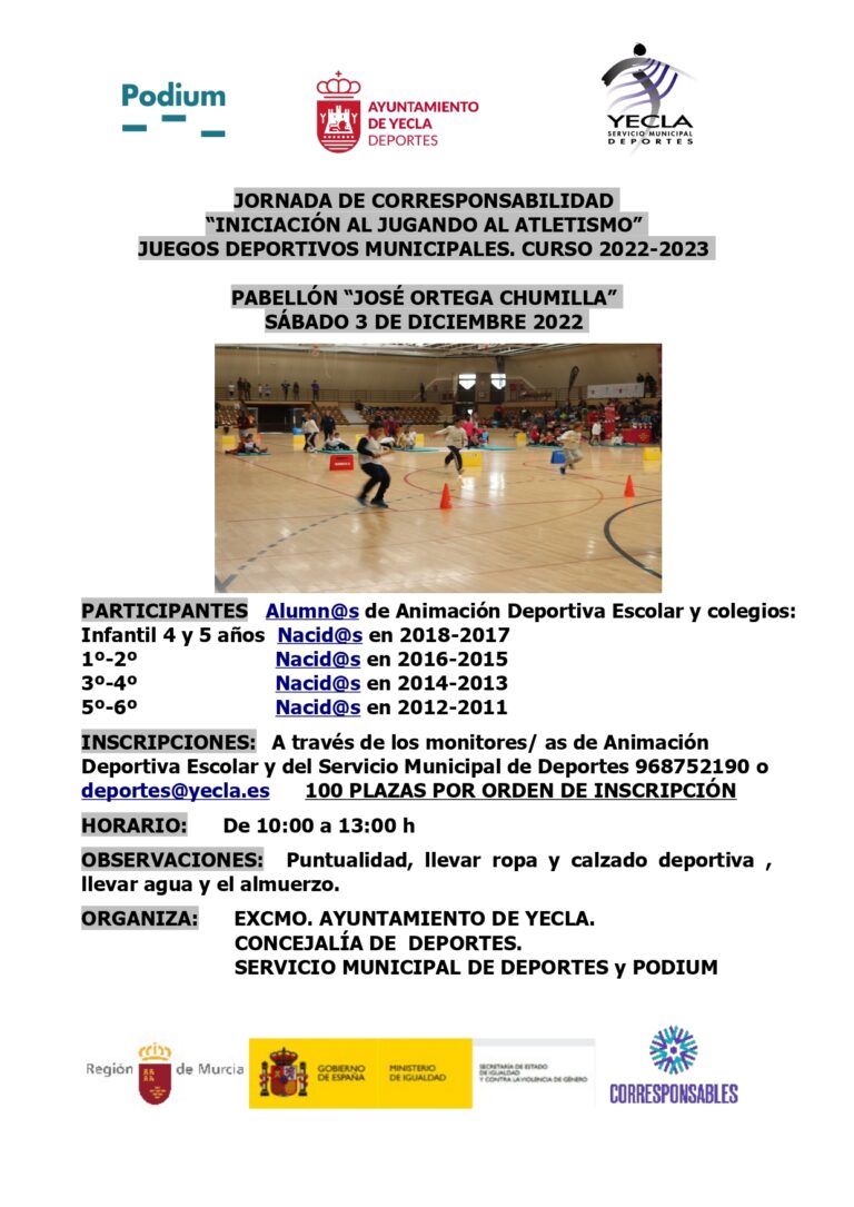Inscripciones: a través de los monitores/as de Animación Deportiva Escolar y del Servicio Municipal de Deportes 968752190 o deportes@yecla.es. 100 PLAZAS POR ORDEN DE INSCRIPCIÓN