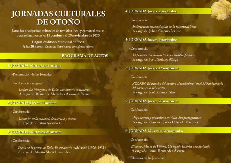 – Conferencia: Arquitectura y urbanismo en Yecla. Sus protagonistas. A cargo de Francisco Javier Delicado Martínez.