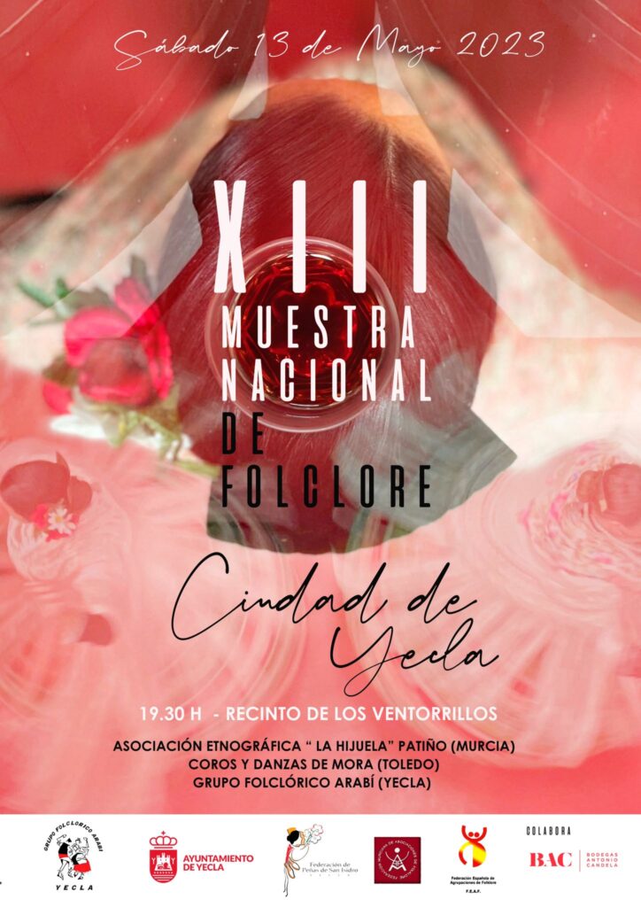 Este año serán tres los grupos participantes en esta nueva muestra: la Asociación Etnográfica “La Hijuela” de Patiño (Murcia), los Coros y Danzas de Mora de Toledo, y el habitual cierre con el anfitrión local, el Grupo Folclórico Arabí de Yecla, todos ellos formados por varias parejas mixtas. Por su parte, el presidente del Grupo Folclórico Arabí ha recordado cómo nació este grupo en 1991 a partir de unos talleres de investigación de Folclore, con la intención de que “no se perdiesen las tradiciones aprendidas de nuestros mayores”. De este modo, esta Muestra está enfocada, según sus palabras, “en conocer otros folclores y raíces” y que veamos con este intercambio de culturas “que el folclore sigue más vivo que nunca”. Así mismo, José Miguel García ha resaltado lo especial que es para ellos actuar este año en el Recinto de los Ventorrillos, “acompañado de los protagonistas de estas fiestas, las Peñas” a las que dedican esta XIII Muestra como un homenaje a su labor.