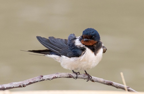 - Podemos diferenciarla por su frente y garganta roja y su cola ahorquillada.