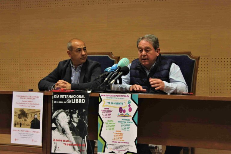 El Concejal de Cultura, Jesús Verdú, acompañado del director de la Casa Municipal de Cultura, Liborio Ruiz Molina, han presentado las actividades organizadas desde la Concejalía de Cultura y la Casa Municipal de Cultura y su red de Bibliotecas Públicas Municipales para conmemorar el Día Internacional del Libro, que se celebra cada 23 de abril.