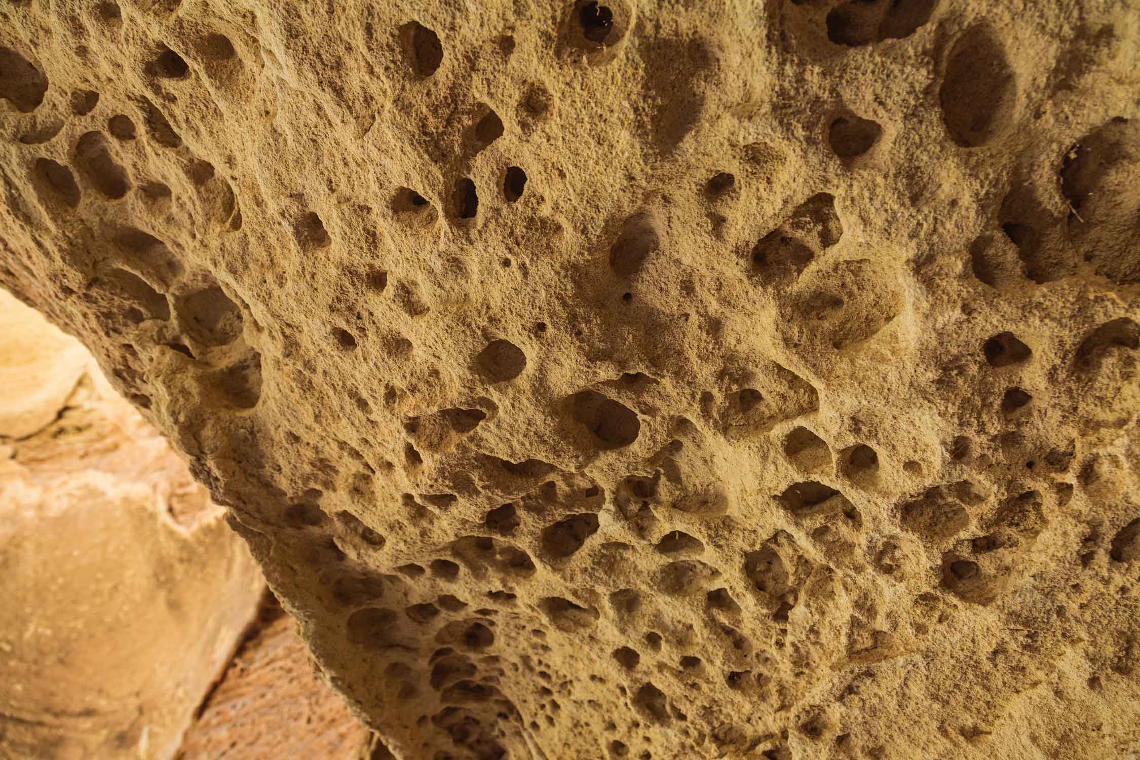El paisaje es de una gran belleza y singularidad. Abundan las biocalcarenitas con intercalaciones de un mineral de cuarzo llamado “jacinto de Compostela”. Pero quizá lo más apreciable sean los fenómenos erosivos que han provocado la formación de grandes bloques redondeados, huecos, cuevas, abrigos, y enormes superficies de “panales” o alvéolos en las paredes rocosas de las biocalcarenitas.