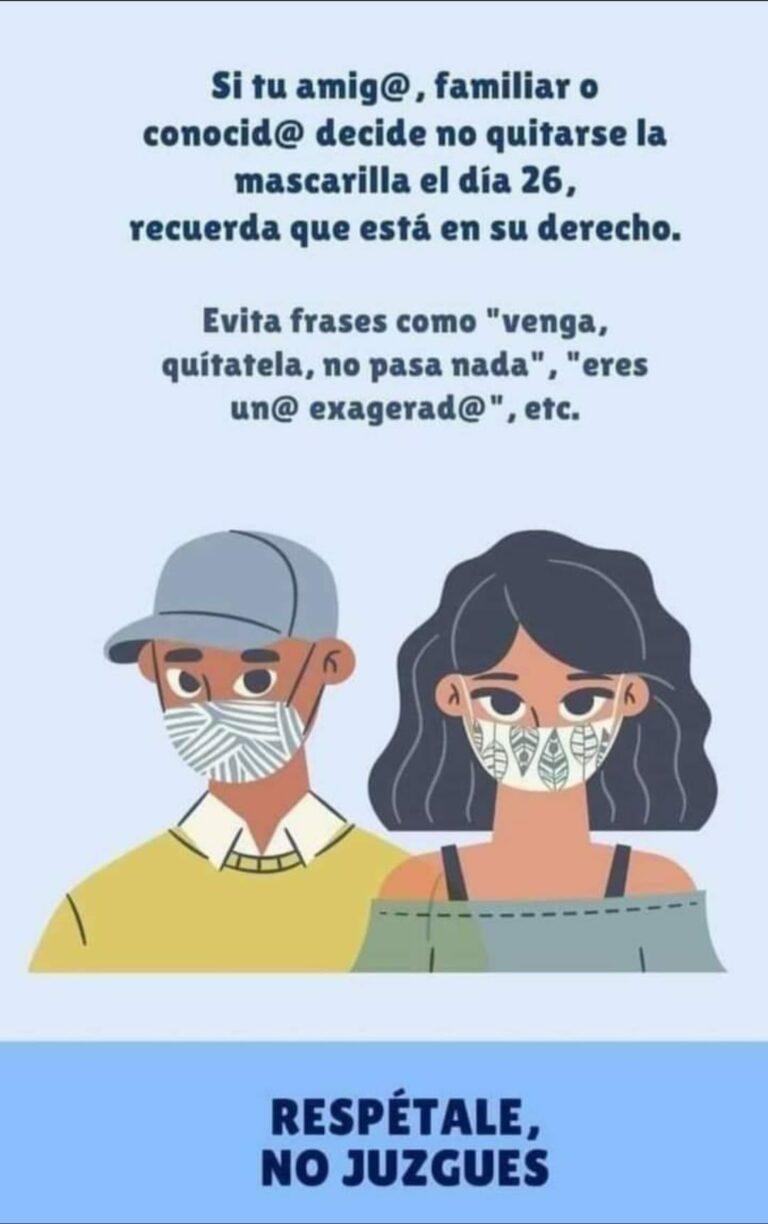 Como medida de prevención e higiene, desde el sábado 26 de junio de 2021, las personas de seis años en adelante quedan obligadas al uso de mascarillas en los siguientes supuestos: