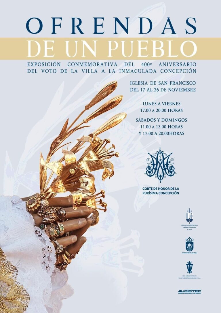 La Corte de Honor de la Purísima Concepción organiza la exposición «OFRENDAS DE UN PUEBLO» en conmemoración del 400 Aniversario del Voto de la Villa de Yecla a la Inmaculada Concepción.