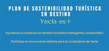El Ayuntamiento de Yecla está realizando un Plan de Sostenibilidad Turística para concurrir a la Convocatoria Extraordinaria del Programa de Planes de Sostenibilidad Turística en Destino, de la Secretaria de Estado de Turismo. Mediante este Plan, el destino pretende impulsar una transformación competitiva en su modelo turístico, que ayude a aumentar la llegada de turistas, a promover un desarrollo turístico inteligente y sostenible, y a acelerar la recuperación económica en el sector.