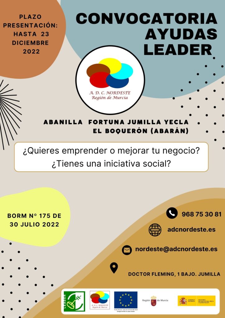 La convocatoria 2022 de Ayudas dispone de 1.055.197,17 euros, para los proyectos que se presenten en 2022 y para desarrollar en los municipios de Abanilla, Fortuna, Jumilla o Yecla, incluidas sus pedanías, y la pedanía de Abarán, El Boquerón.