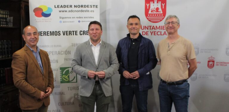 El Director General de Política Agraria Común, Juan Pedro Vera y el Gerente de la Asociación Comarcal del Nordeste, Francisco Santa han presentado las líneas de ayudas del Plan Leader Nordeste. Han estado presentes los concejales de Medio Ambiente, Jesús Verdú y Agricultura, Pedro Romero, del Ayuntamiento de Yecla.