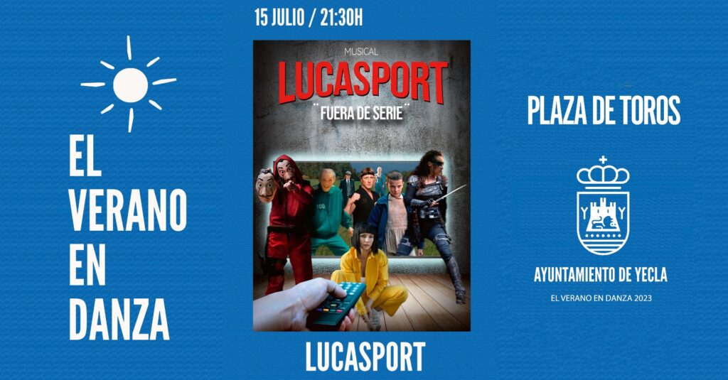 SÁBADO 15 DE JULIO – 21.30 HORAS – PLAZA DE TOROS Los alumnos y alumnas de la Academia de Baile Lucasport presentan el musical «Fuera de serie». Venta de entradas a partir del lunes 10 de julio, de lunes a jueves en las taquillas del Teatro Concha Segura, de 19.30 a 21.00 horas, en la […]