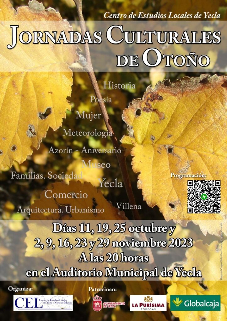 20:00 HORAS. AUDITORIO MUNICIPAL “JUAN MIGUEL BENEDITO” – MIÉRCOLES 29 DE NOVIEMBRE Jornadas Culturales de Otoño. Conferencia “El nuevo museo de Villena. Un legado histórico revalorizado” a cargo de Laura Hernández Alcaraz. Organiza: Centro de Estudios Locales(CEL) Colabora: Ayuntamiento de Yecla