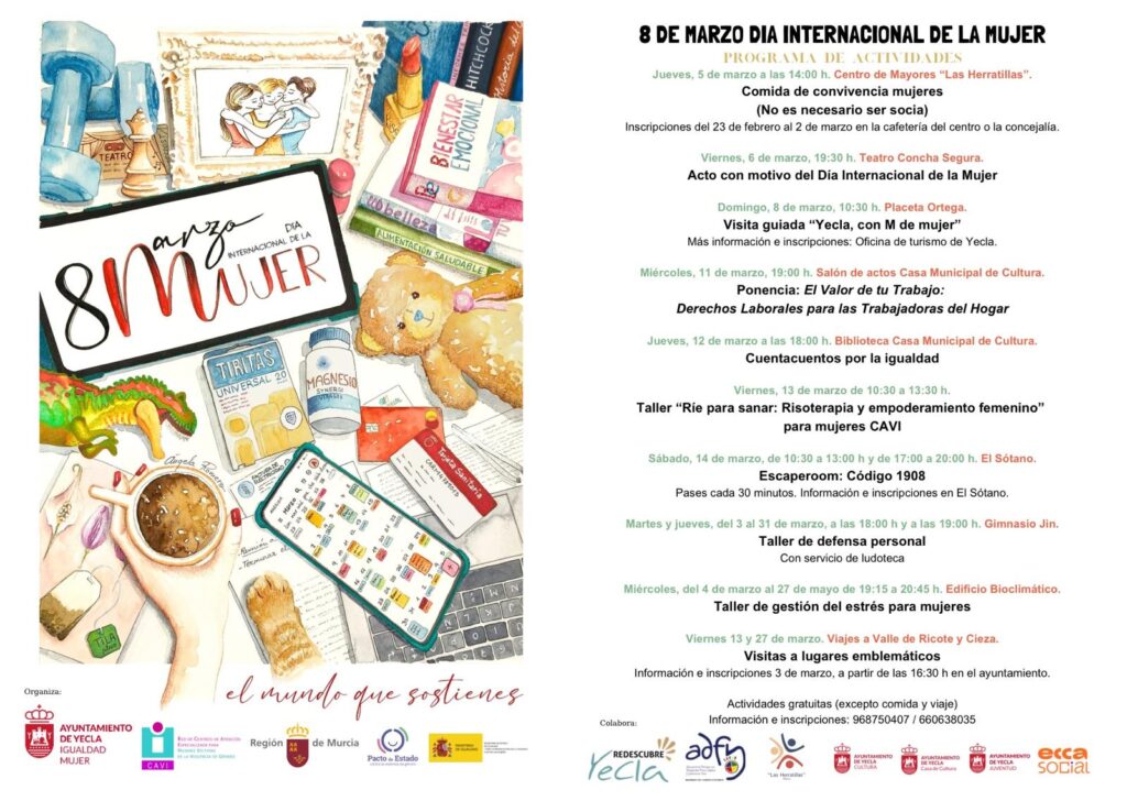 Con motivo del 8 de marzo, Día Internacional Internacional de la Mujer, la concejalía de Política Social, Igualdad, Mujer y Familia del Ayuntamiento de Yecla, ha organizado un programa de actividades variado.