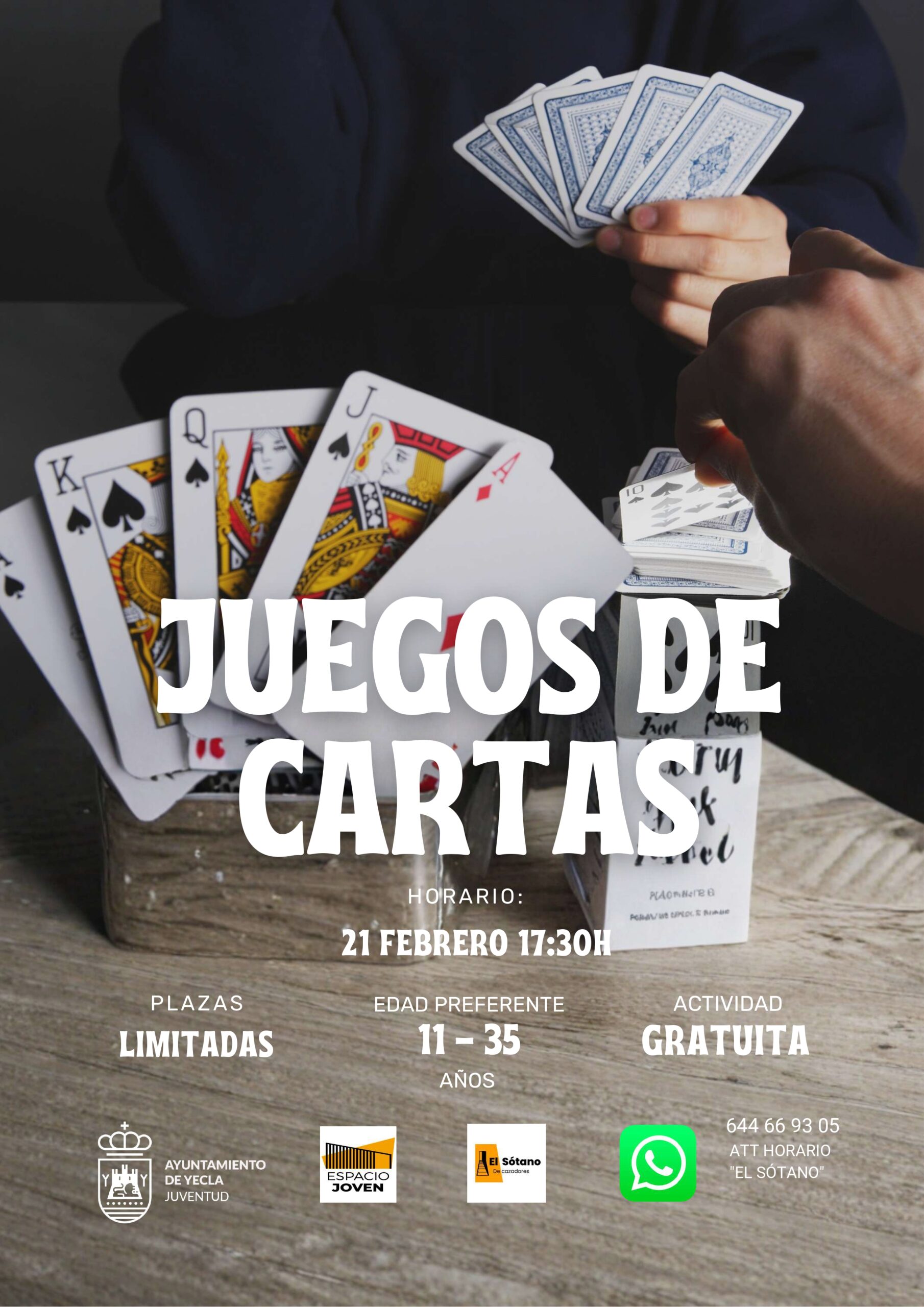ACTIVIDADES EL SÓTANO: Juego de Cartas 21 de Febrero a las 17:30h. Edificio Bioclimático Actividad Gratuita + Añadir Google Calendar + exportación iCal / Outlook Fecha 21 Feb 2026 Hora 17:30 - 18:00 Localización Edificio Bioclimático Calle Abad José Sola, s/n Categoría Centro Juvenil El Sótano