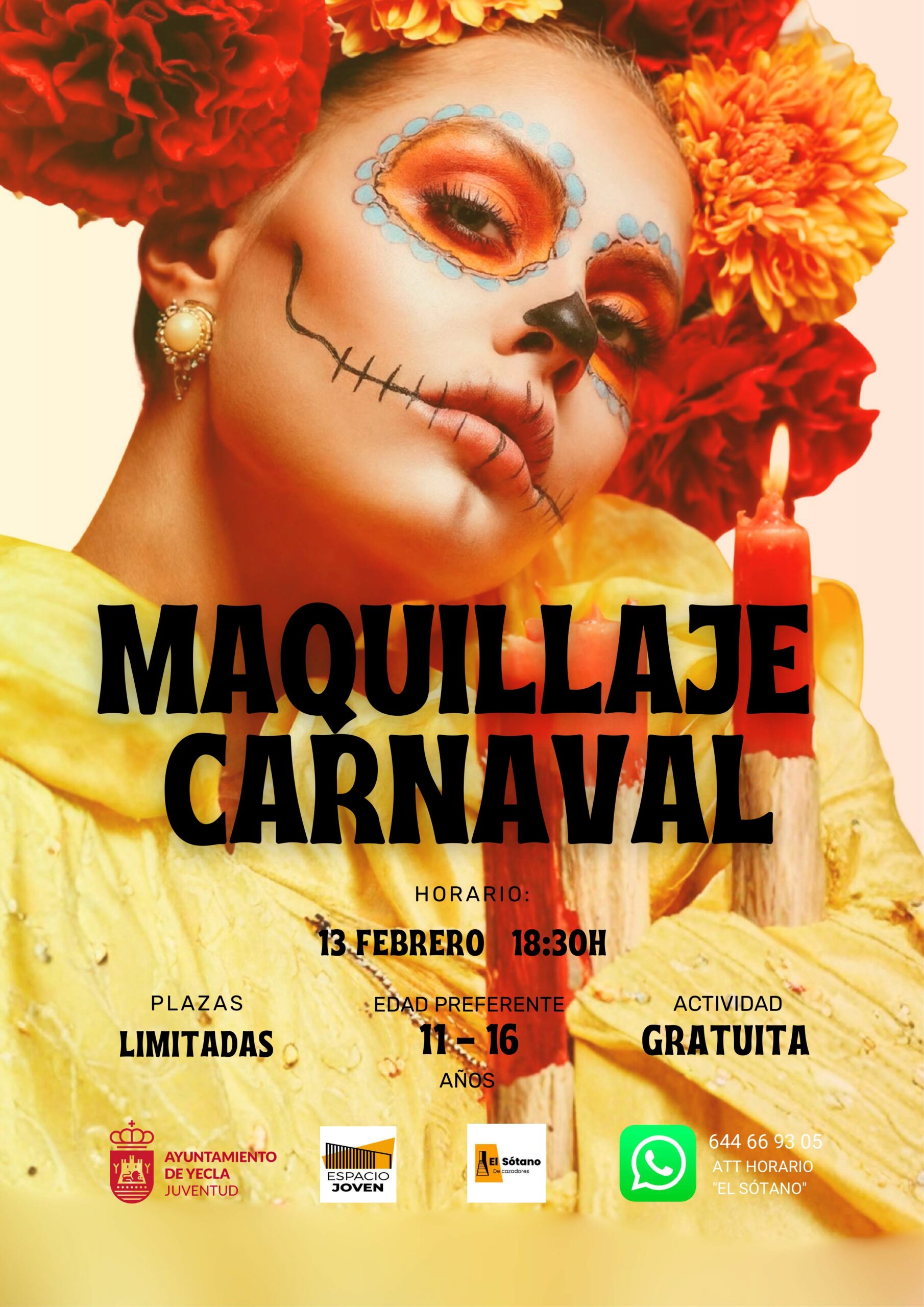 ACTIVIDADES EL SÓTANO: Taller Maquillaje de Carnaval 13 de Febrero a las 18:30h. Edificio Bioclimático Actividad Gratuita + Añadir Google Calendar + exportación iCal / Outlook Fecha 13 Feb 2026 Hora 18:30 - 19:00 Localización Edificio Bioclimático, Sótano de Cazadores y Zonas al aire libre Categoría Centro Juvenil El Sótano