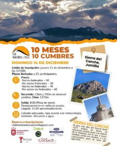 DOMINGO 14 DE DICIEMBRE – SIERRA DEL CARCHE JUMILLA – SALIDA 8H (Plaza de Toros).