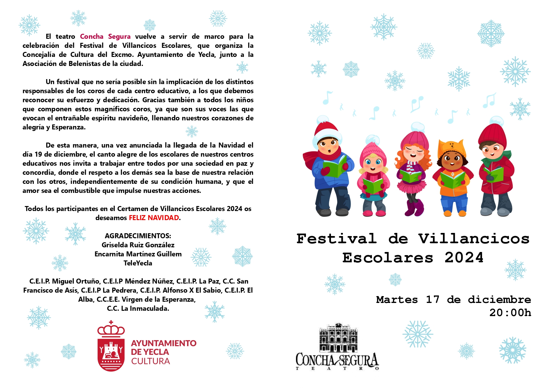 Festival de Villancicos Escolares 2024 + Añadir Google Calendar + exportación iCal / Outlook Fecha 17 Dic 2024 ¡Caducado! Hora 20:00 Localización Teatro Concha Segura Parque de la Constitución, s/n. 30510 Yecla (Murcia) Categoría Actos Teatro Concha Segura