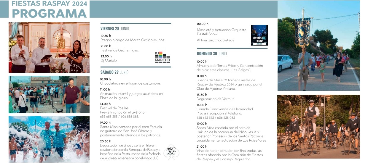 Fiestas patronales de Raspay, dedicadas al Sagrado Corazón de Jesús e Inmaculado Corazón de María. 28 al 30 de junio de 2024.