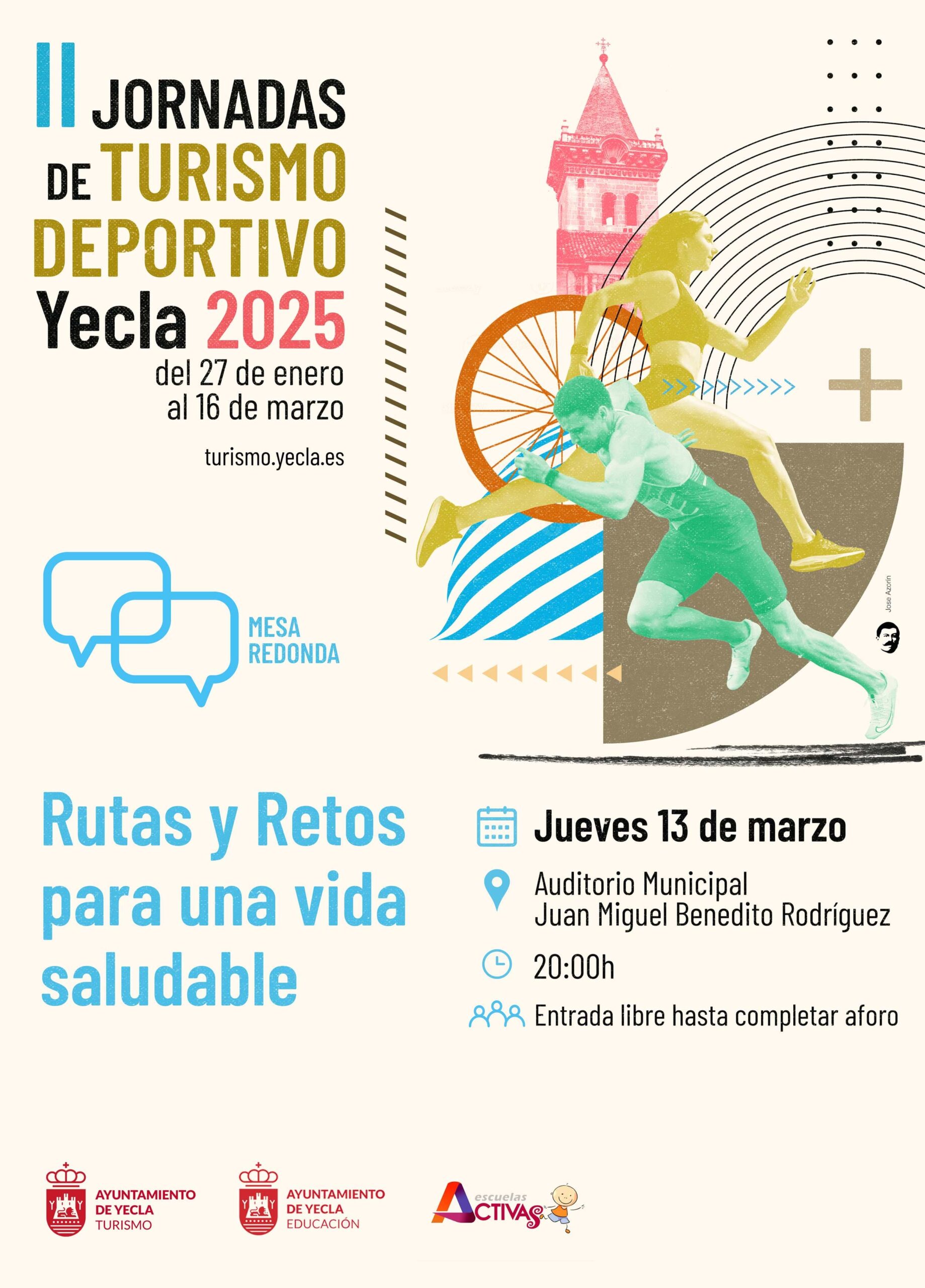 II Jornadas de turismo deportivo Yecla 2025: Rutas y retos para una vida saludable Mesa redonda + Añadir Google Calendar + exportación iCal / Outlook Fecha 13 Mar 2025 ¡Caducado! Hora 20:00 Localización Auditorio Municipal "Juan Miguel Benedito" Plaza Mayor, s/n - 30510 Yecla (Murcia) Categoría Actos Auditorio Municipal