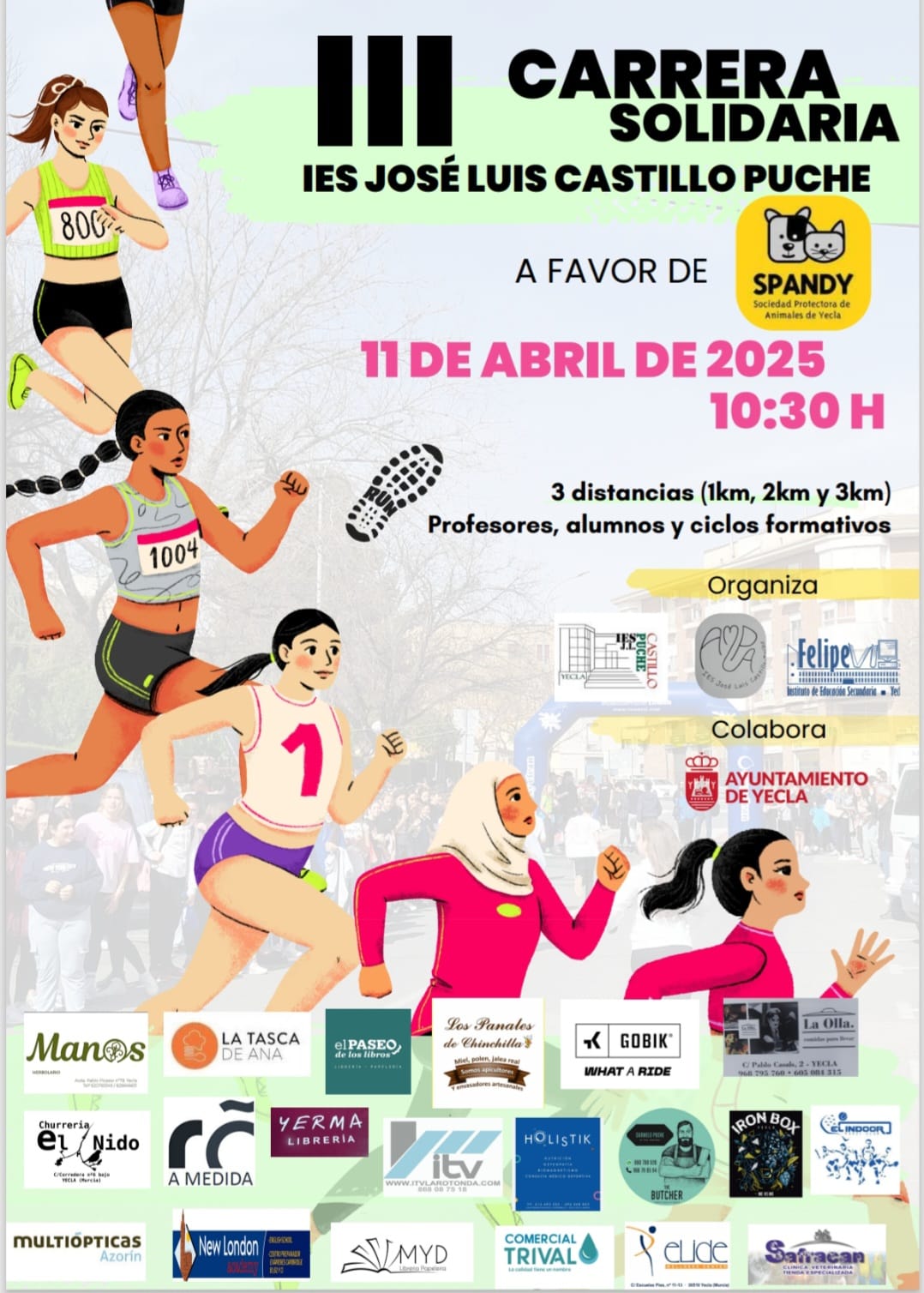 III Carrera solidaria IES José Luis Castillo Puche A favor de SPANDY + Añadir Google Calendar + exportación iCal / Outlook Fecha 11 Abr 2025 ¡Caducado! Hora 10:30 Localización IES José Luis Castillo Puche Calle Játiva, 2