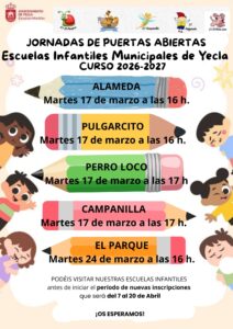 Jornada de Puertas Abiertas Escuelas Infantiles 26/27 Escuelas Infantiles Municipales de Yecla Curso 2026-2027 + Añadir Google Calendar + exportación iCal / Outlook Fecha 17 Mar 2026