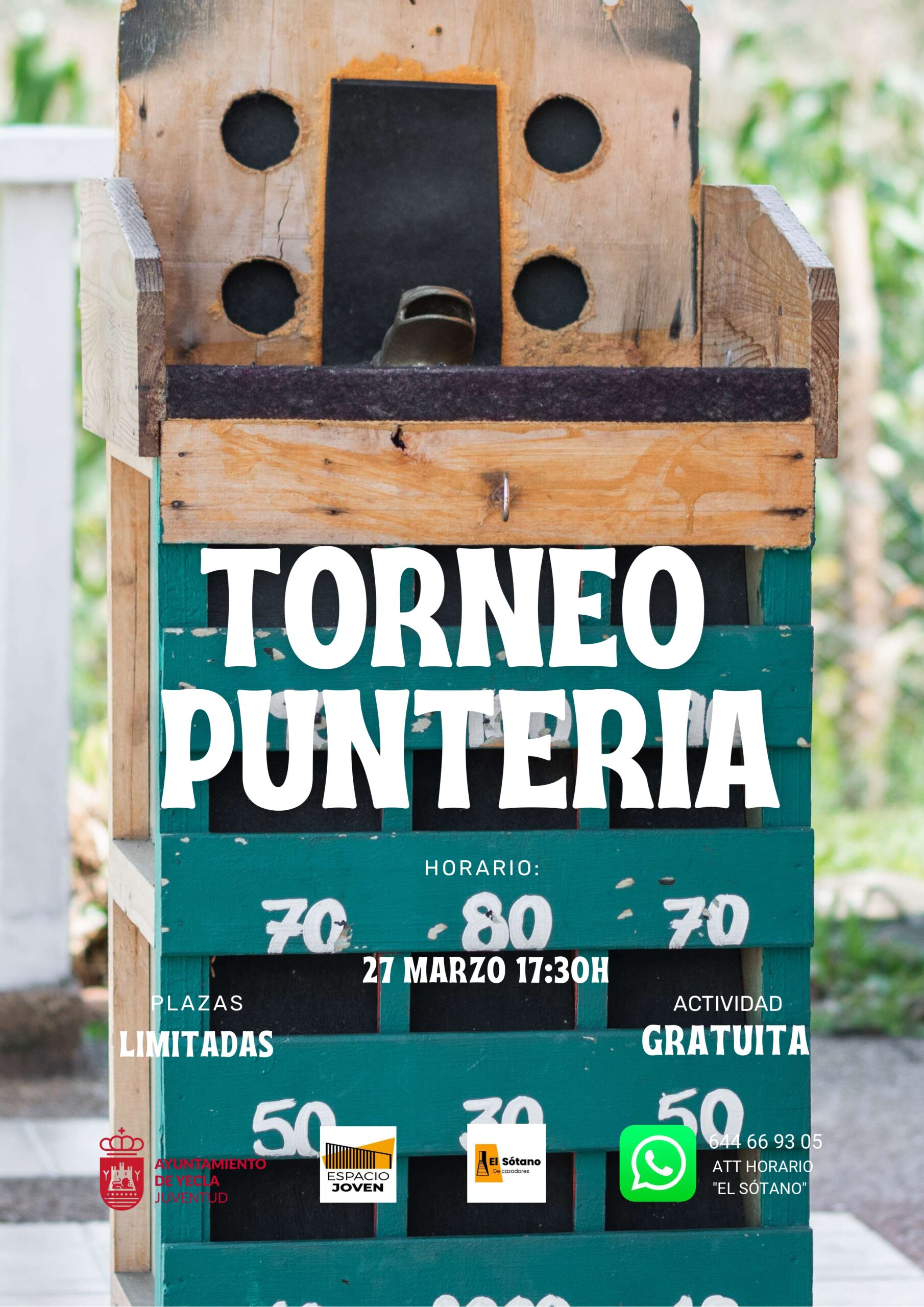 ACTIVIDADES «EL SÓTANO» : TORNEO PUNTERÍA PLAZAS LIMITADAS – 27 MARZO – 17H30 + Añadir Google Calendar + exportación iCal / Outlook Fecha 27 Mar 2026 Hora 17:30 Localización Edificio Bioclimático, Sótano de Cazadores y Zonas al aire libre Categoría Actos Edificio Bioclimático