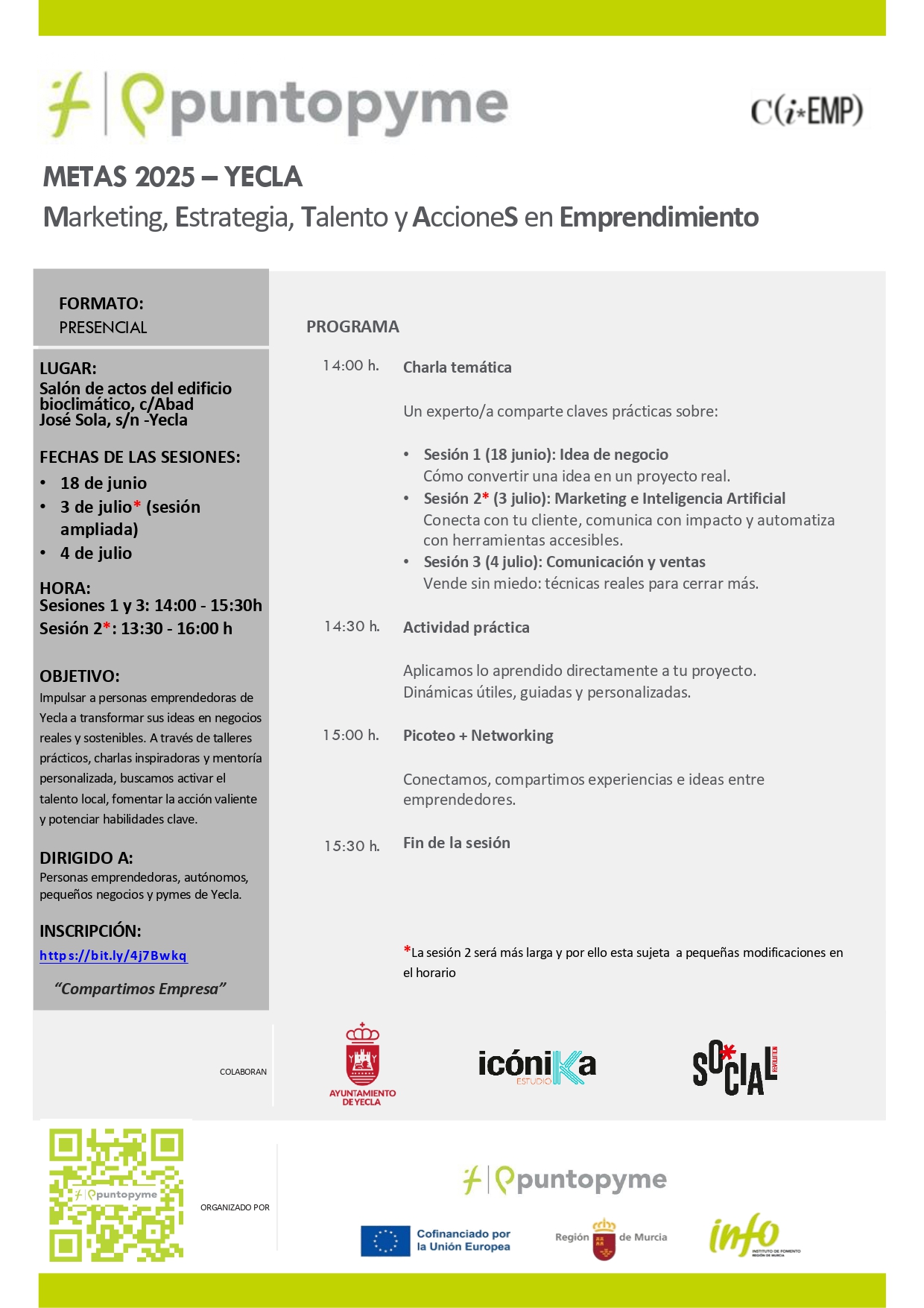 «METAS 2025», encuentro sobre «Marketing, Estrategia, Talento y Acciones en Empredimiento», Organiza: INFO Región de Murcia a través de la Red PuntoPyme