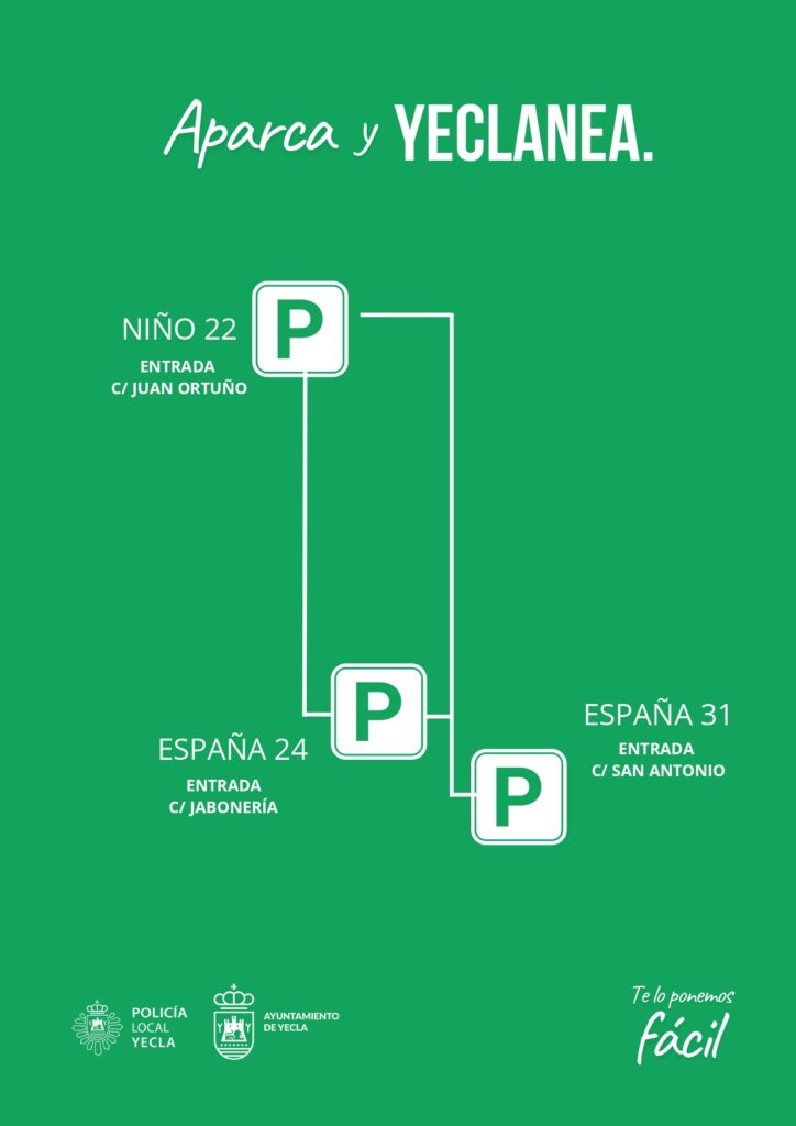 Estas actuaciones se enmarcan dentro de una estrategia de dinamización del centro de la ciudad en la que se ha trabajado con diálogo y colaboración con los comerciantes y vecinos de la zona. Bajo el lema “Aparca y Yeclanea” se han creado tres aparcamientos gratuitos en las calles Hospital, Jabonería y El Niño. El gobierno de Lajara pone en marcha un modelo de aparcamiento rotatorio, gratuito, para favorecer al comercio y la hostelería de la zona. “No solo hablamos de cantidad, sino también de un mejor modelo. No solo creamos 80 plazas de aparcamiento, sino que mejoramos su utilidad. Más rotación significa más oportunidades para el comercio de la zona”, ha dicho la alcaldesa.