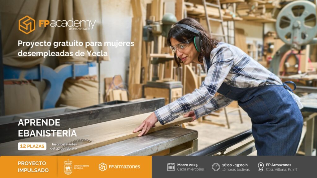 Formación gratuita dirigida a mujeres desempleadas que deseen aprender el oficio de la ebanistería. Fecha límite de inscripción: jueves 27 de febrero a las 23:59 h.