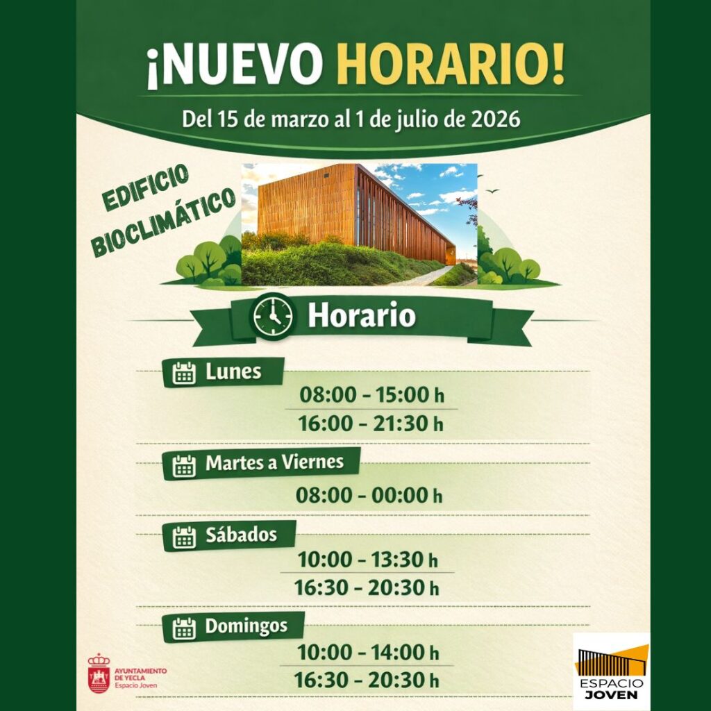 Ampliación del horario del Edificio Bioclimático hasta el 1 de Julio de 2026.