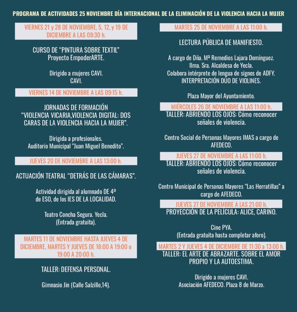 Programa de actividades con motivo del 25 de Noviembre, «Día Internacional de la eliminación de la violencia hacia la mujer».