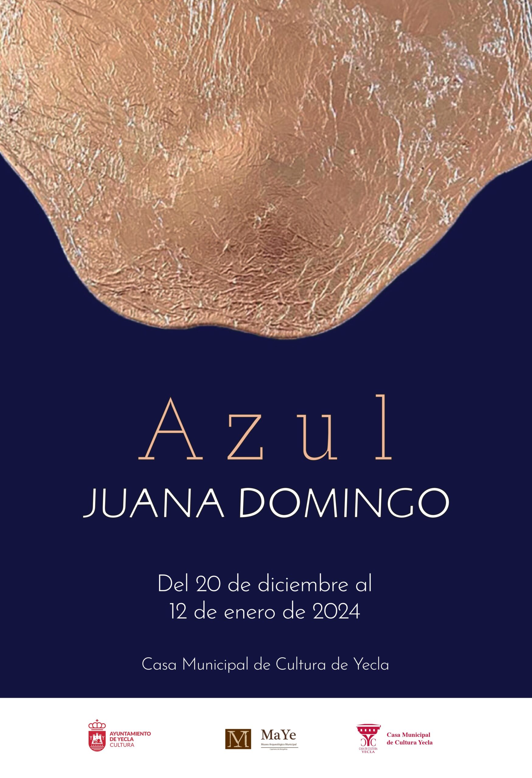Bajo el título «Azul» Juana Domingo nos muestra sus últimos trabajos. Azul es el color que representa libertad, lealtad, armonía, verdad y seriedad. El azul desencadena en Juana Domingo una amplia variedad de respuestas emocionales: desde la tranquilidad y la confianza hasta la tristeza y la distancia; una percepción del mundo que le rodea muy particular, que trasciende al ámbito de la nostalgia. Con verdadera soltura maneja diversas técnicas: el óleo, la encáustica, el pan de oro, la fotografía sobre lienzo…
