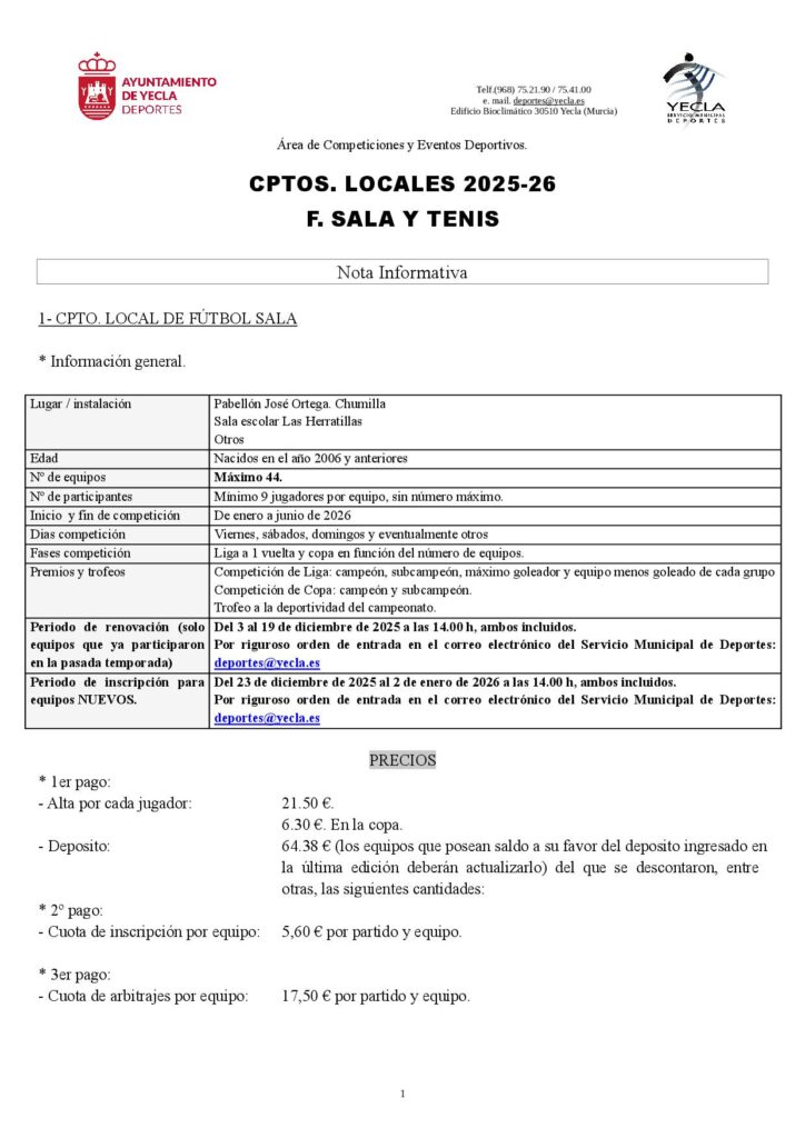 Campeonatos locales 2025/2026